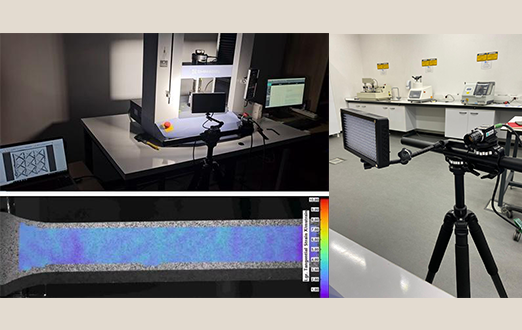 • Bu sistem ile çekme /basma testi sırasında numune üzerinde lokal olarak 2 boyutlu gerinim dağılımı elde edilebilmektedir. Bu kullanımı kolay sistem, akademik eğitmenlerin yarının mühendislerine ve bilim insanlarına malzeme testleri için DIC'nin optik ölçüm tekniğini etkin bir şekilde sunmalarına olanak tanır. DIC, yüzeydeki deformasyonları ölçmek için kullanılır. Bu, malzeme veya yapı üzerindeki gerilmeleri ve deformasyonları belirlemeye yardımcı olur. Ayrıca, malzemelerde oluşan çatlakları ve hasarları tespit etmek ve bunların zaman içindeki gelişimini izlemek için de kullanılmaktadır.